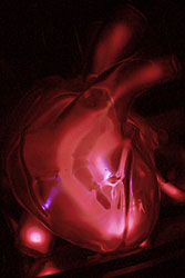 While creating Charged Hearts in 1995 and reflecting on the slippery language of physics and emotion, we were considering which areas would be the next subject for simulation and mediation. Consequently, our first project on emotion and intimacy was a Web site linked to the glass hearts in Charged Hearts. The Web site was an ironical look at an intimacy simulation: a real time, interactive, emergent game of hearts where one’s heartbeat could become dangerously over excited, have a heart attack, or become comatose. Its life depended on the relationship with other users’ hearts, which could be called in, dragging in their malcontent friends’ heartbeats with them. With our slim resources, we cheerfully called it the slowest game. However, it anticipated a move in information technologies to model emotion, now among a trend of related ways to “make alive’’ new technological representations.