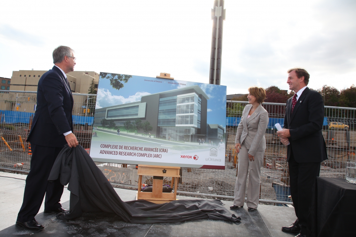 From left to right: The Honourable Gary Goodyear, Minister of State (Science and Technology), Mona Nemer, Vice-president, Research, University of Ottawa, Allan Rock, President and Vice-Chancellor, University of Ottawa