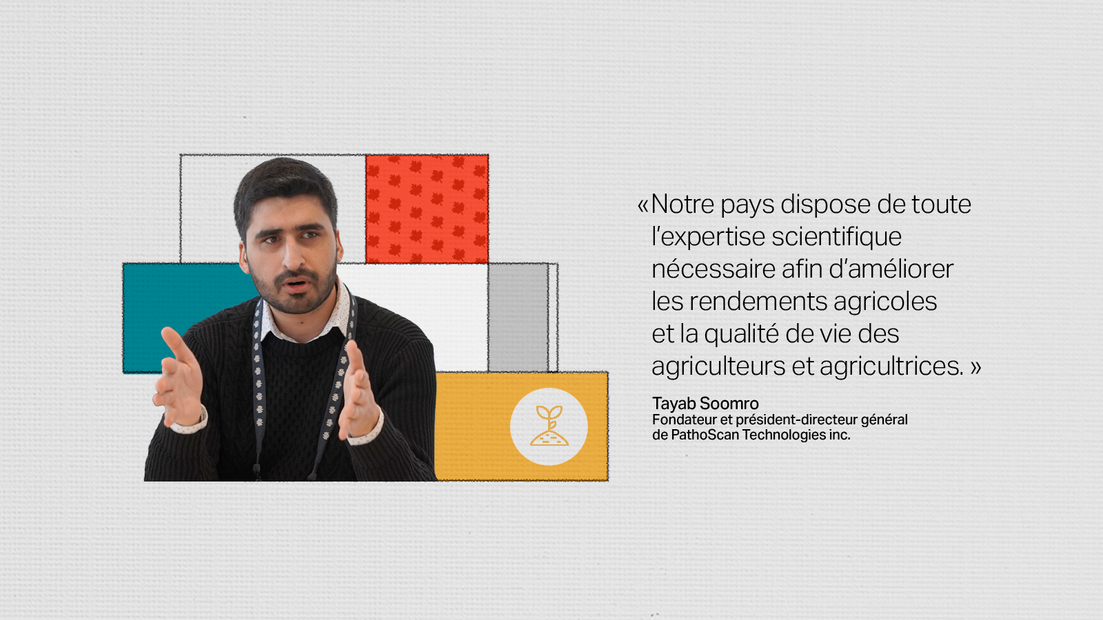PathoScan (en anglais seulement), l’entreprise de Tayab Soomro établie à Saskatoon, a mis au point un système portable appelé « PathoBox ». De la taille d’une boîte à chaussures, il conjugue des techniques de pointe d’amplification de l’ADN et d’intelligence artificielle afin de détecter les maladies des cultures directement dans les champs. Grâce à PathoBox, les agriculteurs et agricultrices peuvent tester tout type de culture et obtenir des résultats de qualité professionnelle en seulement 30 minutes, ce qui représente une grande amélioration par rapport aux tests traditionnels qui doivent être envoyés à un laboratoire et dont l’obtention des résultats peut prendre jusqu’à deux semaines.